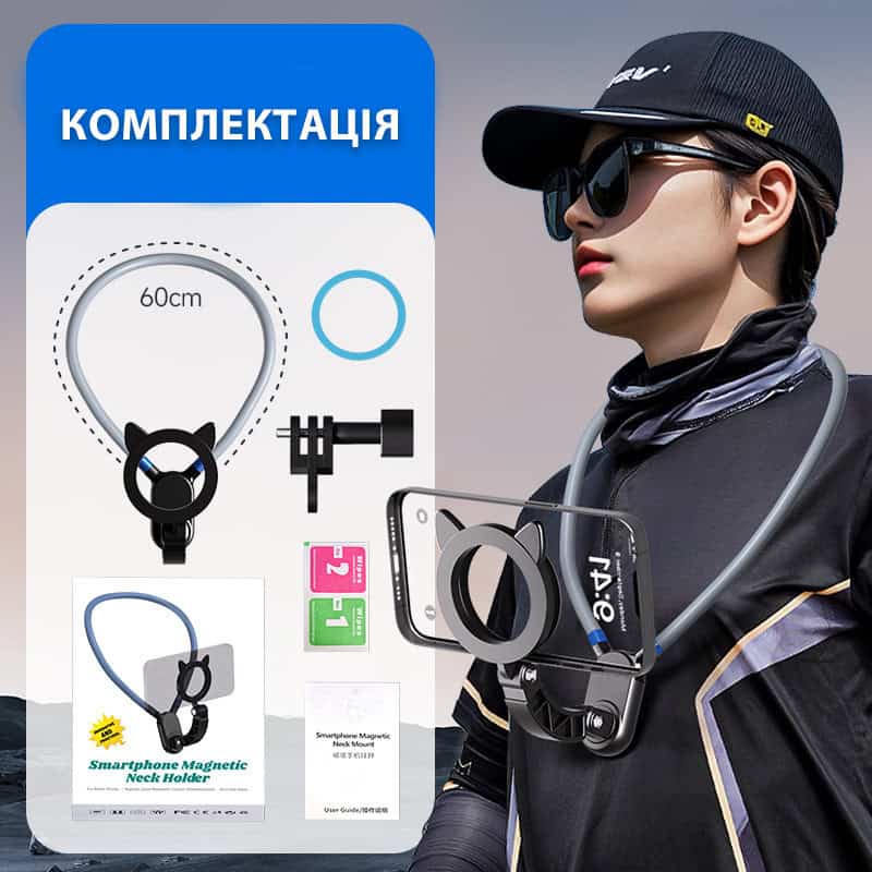 Хочеш знімати POV-контент як професіонал? Цей магнітний тримач на шию — ідеальний інструмент для зйомок від першої особи, який звільняє руки, але тримає кадр чітко й стабільно.